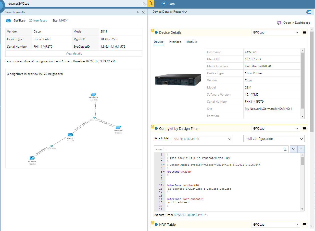 1.Enter a specific device hostname in the search field. For example, device:GW2Lab.