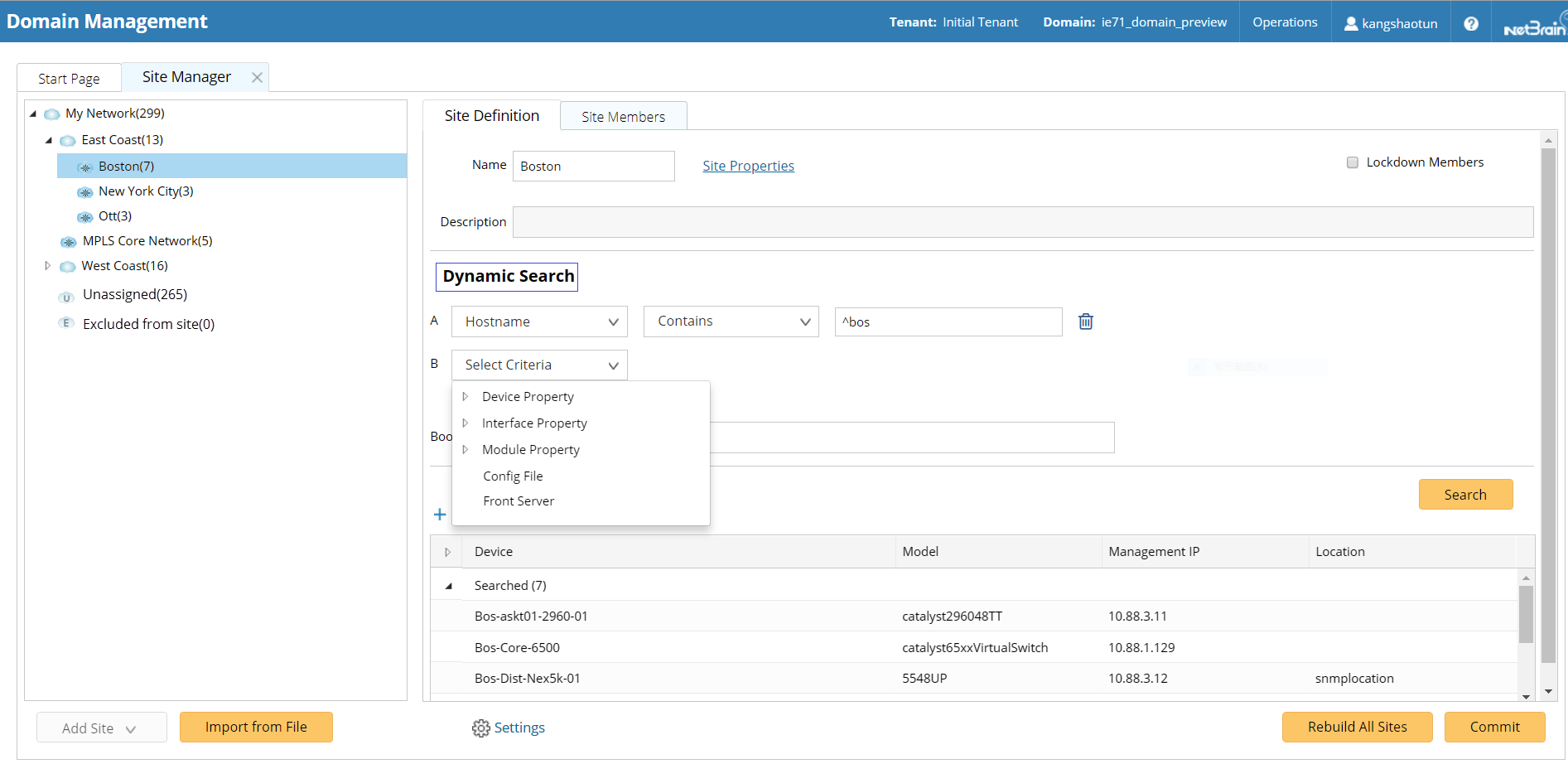 5.In the Site Manager, click Rebuild All Sites to rebuild the site topology. The Site Member pane opens automatically and lists the devices in the current site.